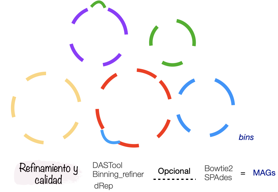 Para disminuir la contaminación e incrementar la completitud hay algunos programas que pueden ayudarnos. Entre ellos están Binning_refiner y DASTool.