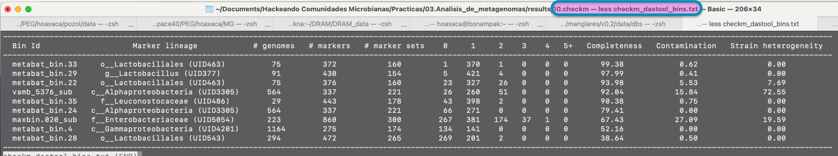 Y una captura de ejemplo de como se ve la salida de CheckM: