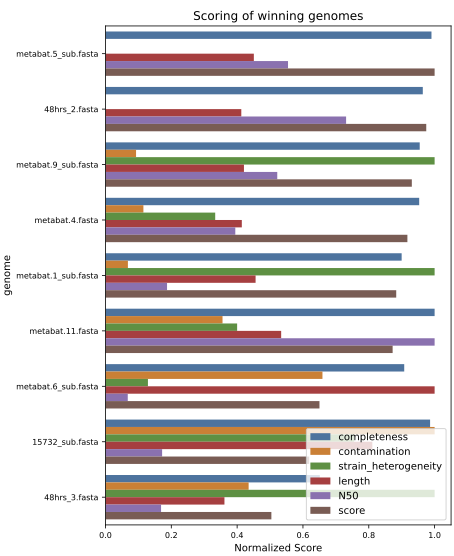 Este es uno de los plots generados por dRep, que representa los mejores bins desreplicados.